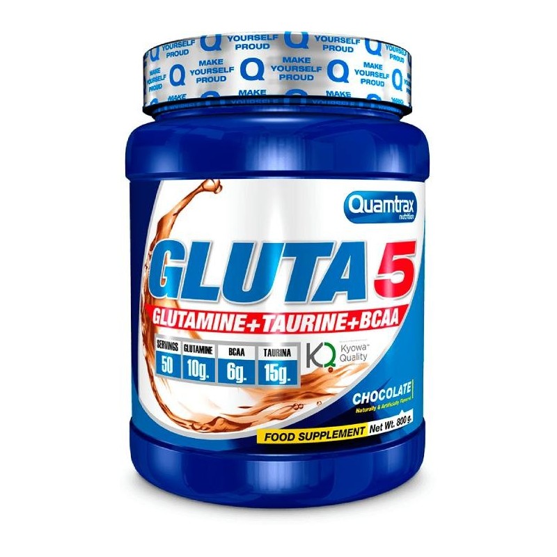 Gluta 5 está formulado exactamente con L-Glutamina, BCAA y Taurina de modo que su efecto es el de un poderoso anabolizante o constructor muscular a la vez que anticatabólico.