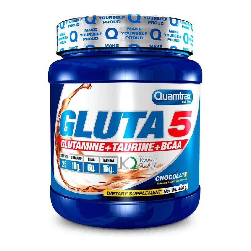 Gluta 5 está formulado exactamente con L-Glutamina, BCAA y Taurina de modo que su efecto es el de un poderoso anabolizante o constructor muscular a la vez que anticatabólico.