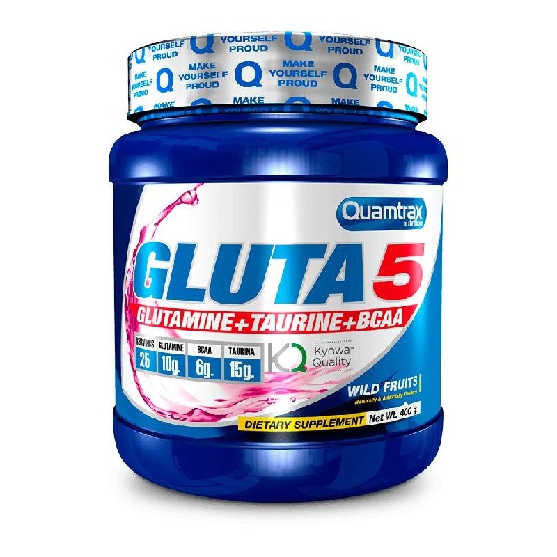 Gluta 5 está formulado exactamente con L-Glutamina, BCAA y Taurina de modo que su efecto es el de un poderoso anabolizante o constructor muscular a la vez que anticatabólico.