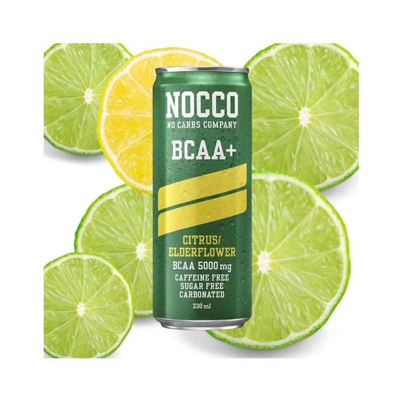 NOCCO BCAA contiene BCAA (aminoácidos ramificados), extracto de té verde, cafeína y seis vitaminas. NOCCO BCAA es una bebida carbonatada disponible en tres deliciosos sabores: Caribbean, melocotón y limón/lima. Todos los productos de NOCCO BCAA son sin azúcar. Cada lata de 330 ml contiene: