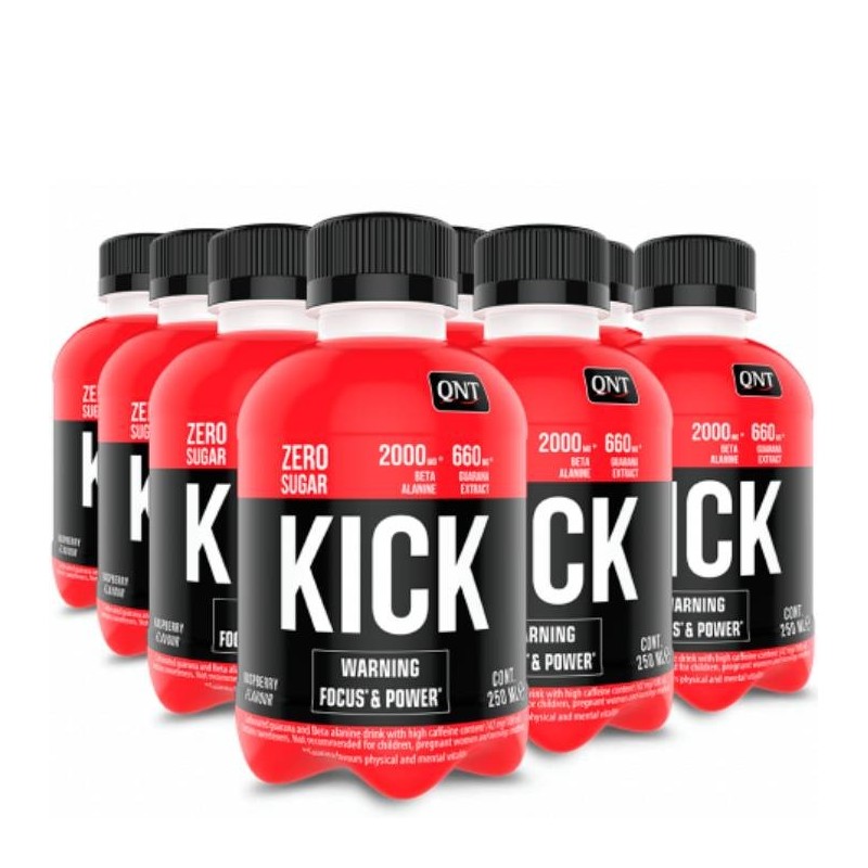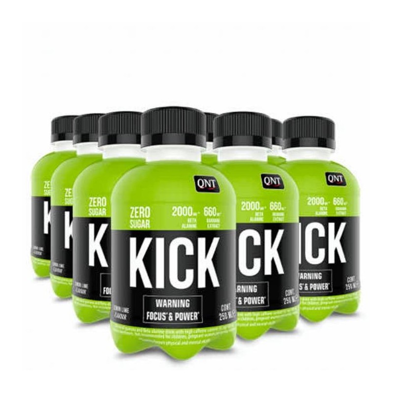 Lo que diferencia a la bebida KICK de otras del mercado es su fórmula naturalmente explosiva altamente concentrada con 660 mg de guaraná, 105 mg de cafeína y 2000 mg de beta alanina.