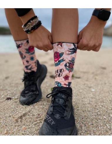 TECNOLOGÍA 360FLOW: Impresión 360º que permite diseños sin cortes en los laterales ni blanqueos al estirar el calcetín, con tintas base al agua que respetan el medio ambiente.