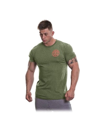 CAMISETA LOGO CHEST - LOGO EN EL PECHO HOMBRE COLOR ARMY/NARANJA (Gold's Gym)