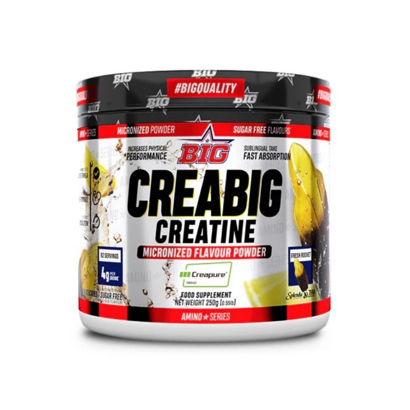 Creabig de Big® es una creatina de calidad superior, sin azúcares añadidos y apta para dietas vegetarias y veganas.