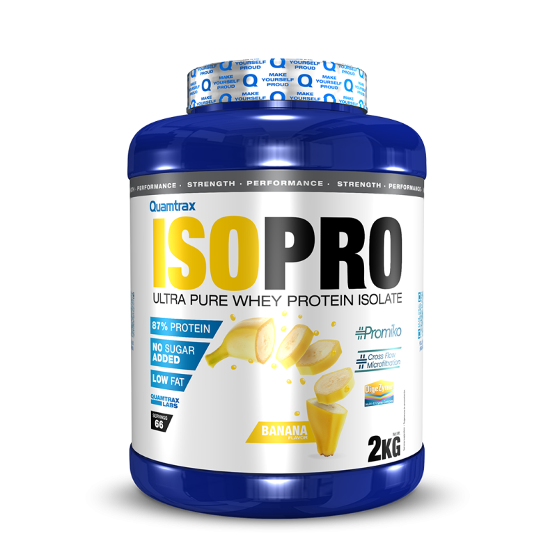 Isopro de Quamtrax, es una de las proteínas de mayor porcentaje proteico y más alto valor biológico del mercado y potente constructor de masa muscular libre de grasa.
