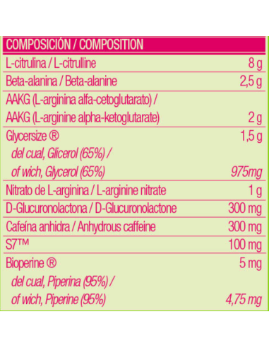 • 8g de Citrulina : Ayuda a producir más óxido nítrico.