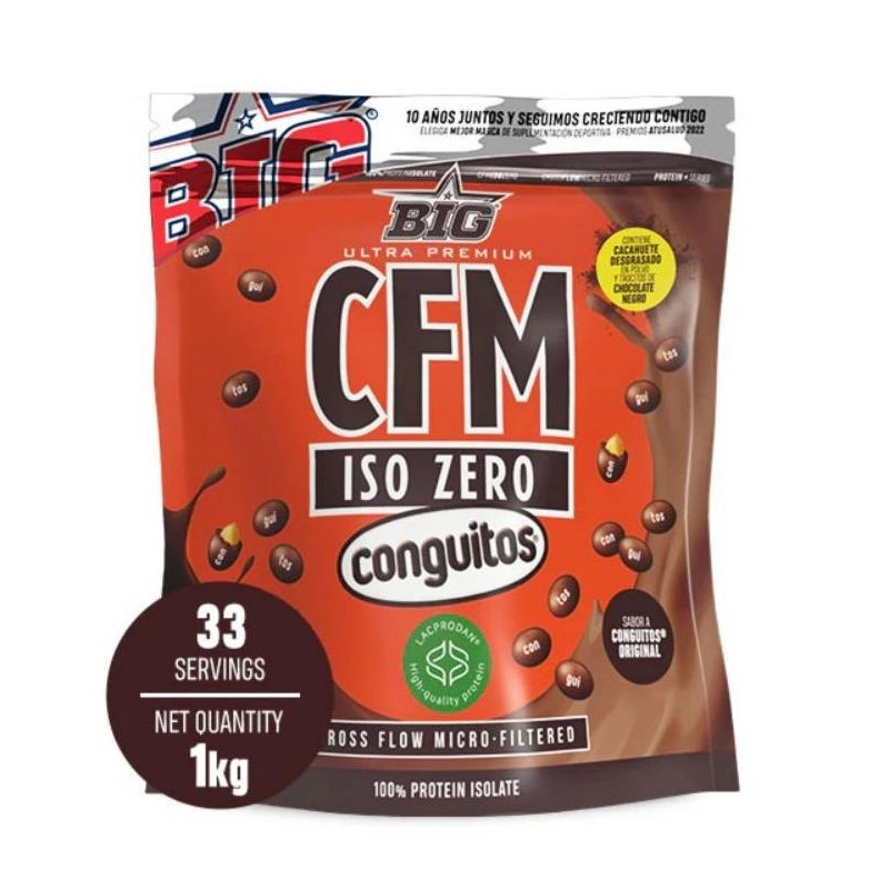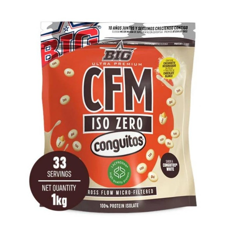Descubre la nueva proteína CFM ISO ZERO CONGUITOS® fruto de una nueva colaboración de BIG® y LACASA®. Disfruta ya del genuíno sabor que te acompañó durante toda tu infancia ¡con polvo de cacahuete desgrasado y trozos de chocolate!, ahora disponible por tiempo limitado en la mejor proteína del mercado en su sabor ORIGINAL y en versión WHITE, con la calidad y seguridad que ofrece el mejor aislado de suero Lacprodan® SP-9225 Instant de Arla® Foods Ingredients.