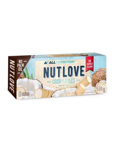 Nutlove Crispy Rolls Coconut 140G (Allnutrition). Son deliciosos rollos de oblea con un delicado relleno con sabor a coco. ¡El sabor del relleno se inspiró en una popular crema NUTLOVE!