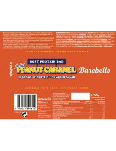 Los cacahuetes crujientes y salados se encuentran con el caramelo cremoso y el delicado chocolate con leche. La barra blanda Barebells Salted Peanut Caramel no deja nada que desear.